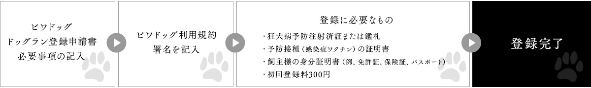 ビワドッグのドッグランをご利用するには、登録が必要となります。