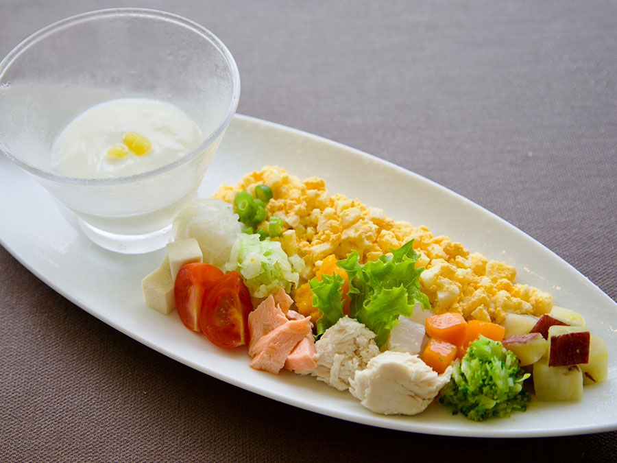 大根・人参・南京・サツマイモ・キャベツ・ジャガイモ・トマト・ブロッコリー・インゲン・レタス・高野豆腐 たまご・パインヨーグルト・サーモン・ささ身