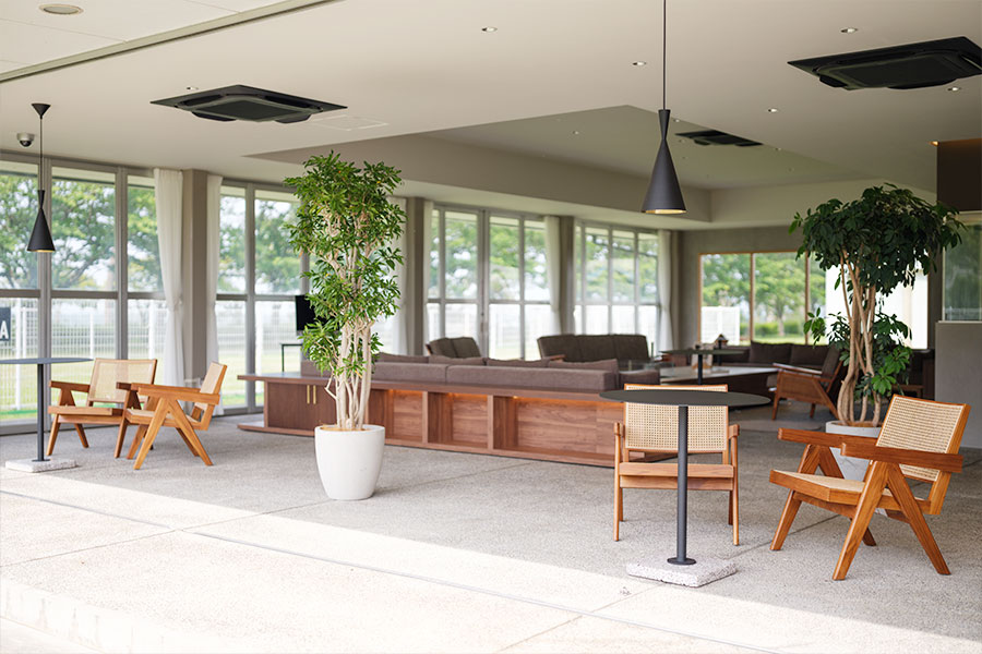 目の前に広がるドッグランを走る愛犬を眺めながら、または愛犬と一緒にジャズを聴きながらゆっくりとお寛ぎ頂ける贅沢なスペースとなっております。