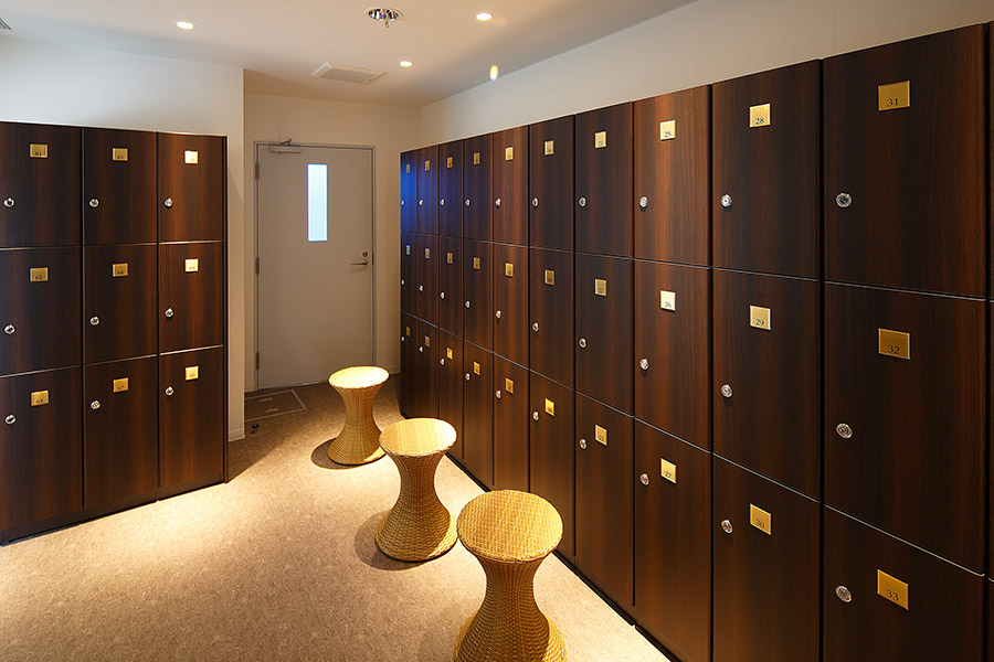 バスタオル・フェイスタオル有り、その他バスアメニティ各種ご用意しています。貴重品ロッカーもご用意しています。