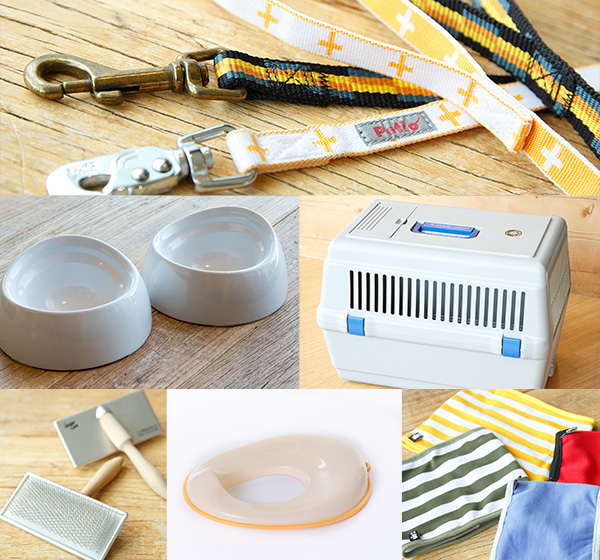 - クレート、ケージ、食器、リード、スリッカー、ペットマット