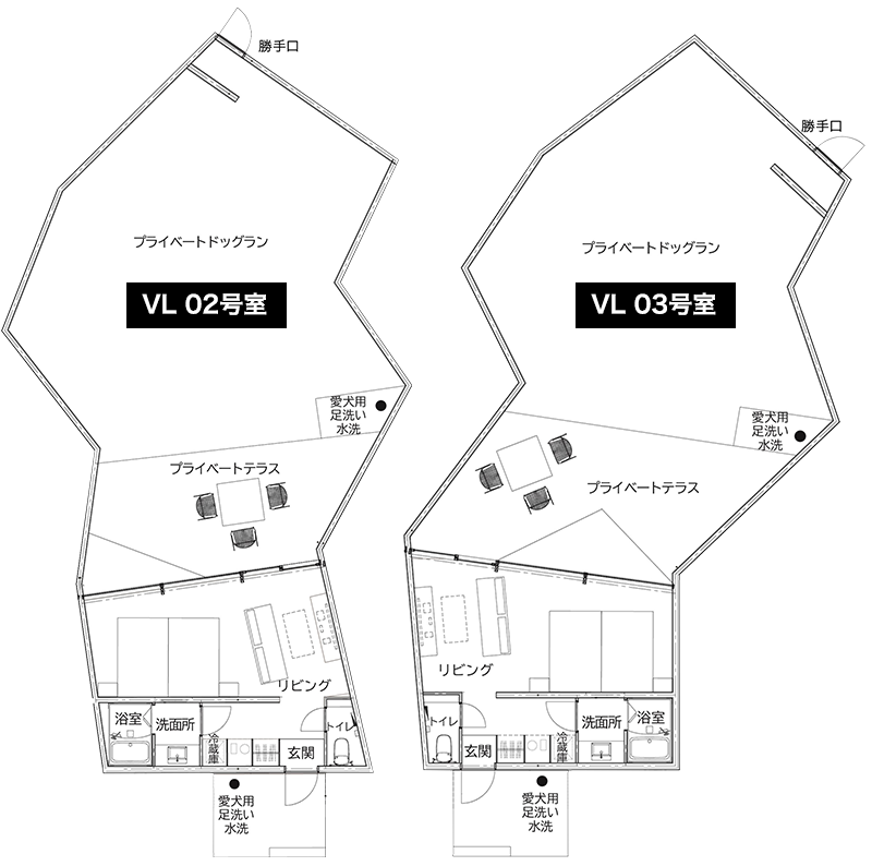 解放感あふれる窓の向こうに広がる113㎡のテラスとプライベートドッグランで愛犬との贅沢な時間を一緒にお寛ぎください。お部屋のデザインは、木の温もりを感じ、シンプルでありながらリゾートホテルならではのラグジュアリー感を大切にしています。